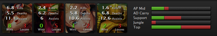 こんんな感じ。luxとblizはsupp。choはmidで主に使ってた。。。気がするw